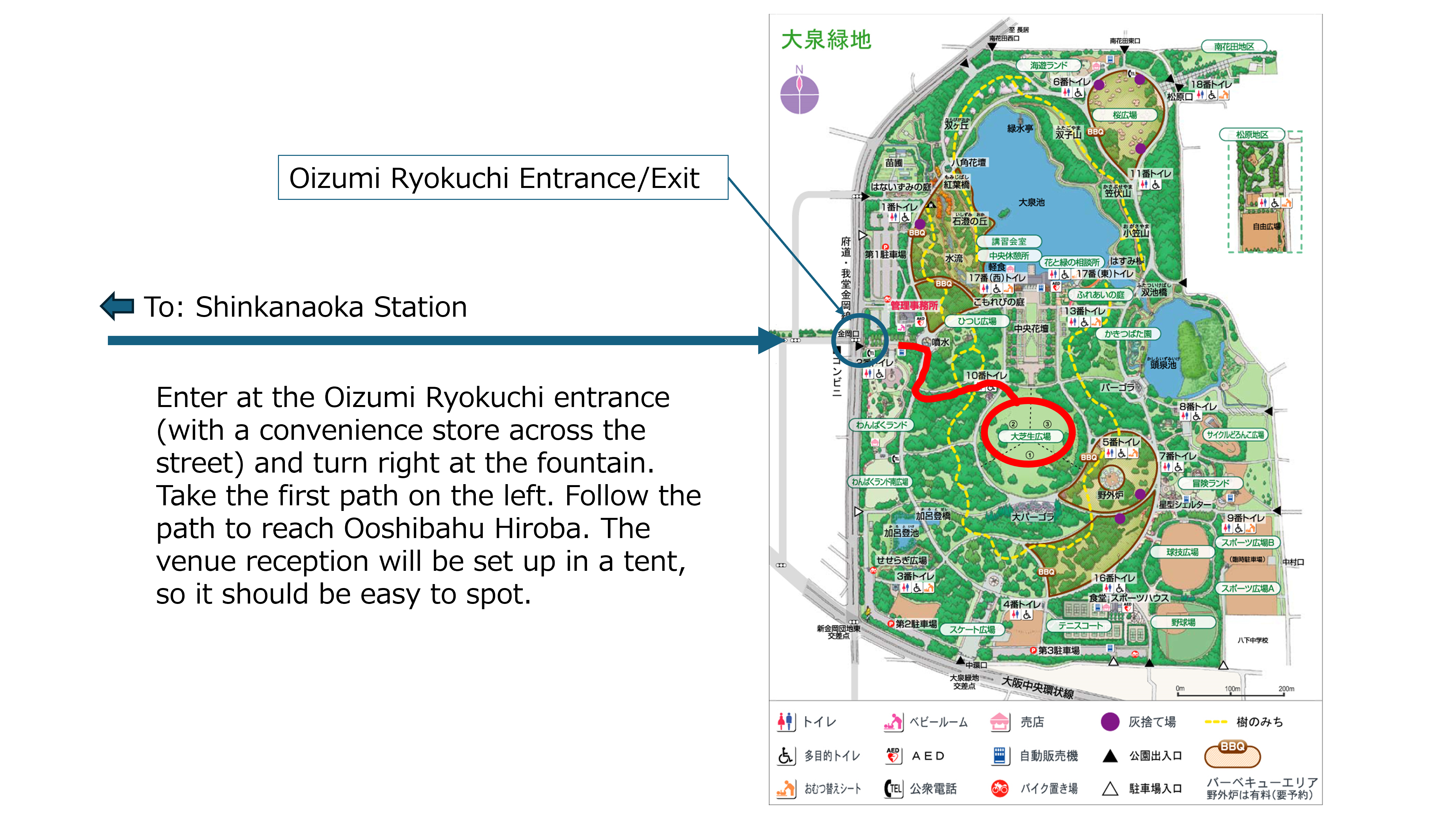 | For those arriving by train or bus | ・For train and bus access, please refer to the Oizumi Ryokuchi Park website(JP only). |